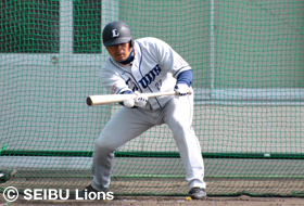 | バント練習をする細川選手 | 開幕一軍を目指す吉見選手 |