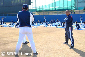 | 渡辺監督が見守る中練習開始 | フリーバッティング初登板雄星投手 |