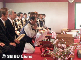 MY PAGE2010シーズン開幕前日(3/19)、埼玉西武ライオンズは西武ドームに程近い狭山不動尊にて、毎年恒例の必勝祈願を行いました。その模様を本日、オフィシャルモバイルサイト・YouTubeにて動画配信いたします。