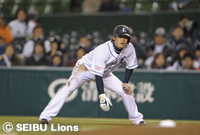 1点リードされたライオンズは3回裏無死、片岡選手がレフト前安打で出塁すると、 いきなり二盗、三盗。3番栗山選手の遊ゴロであっさり生還して同点、さらに逆転の口火となった。