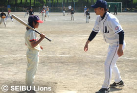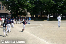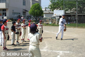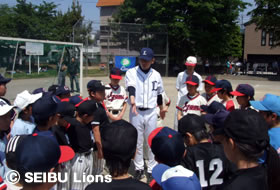 MY PAGE5月16日(日)熊谷市立南小学校グラウンドにおきまして、市内の小学生50名を対象に「埼玉西武ライオンズ野球教室」を開催し、高木大成(球団事業部)が講師を務めました。