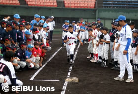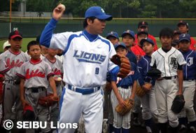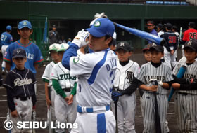 MY PAGE5月23日(日)上尾市民球場において、市内スポーツ少年団に在籍する18チーム小学6年生160名を対象に、「埼玉西武ライオンズ野球教室」を開催し、ライオンズOBの松沼雅之氏、安藤信二氏、小関竜也氏、柴田博之氏が講師を務めました。