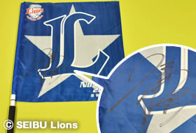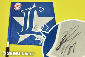 | オフィシャルモバイルサイト全会員 | 中島選手サイン入りプレイヤーズTシャツ(背番号あり) 細川選手サイン入り応援フラッグ【1名さま】 原選手サイン入り応援フラッグ【1名さま】 |