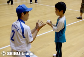 MY PAGE5月29日(土)に埼玉県立武道館主道場において、50名の親子を対象に「親子でキャッチボール教室」が開催され、ライオンズOBの柴田博之氏が講師を務めました。