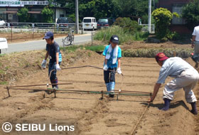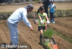 MY PAGE埼玉西武ライオンズでは、4月のさといも定植体験作業(埼玉県狭山市)に続き、6月6日(日)、深谷ねぎ定植体験作業(埼玉県深谷市)を行いました。
