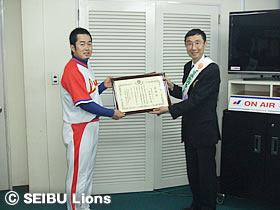 また、Lビジョンでも「犯罪や非行のない明るい社会を築こうとする運動」への広報活動を行い、試合開始前には、埼玉県推進委員会より佐藤友亮選手へ感謝状の贈呈も行われました。