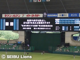 MY PAGE埼玉西武ライオンズでは社会貢献活動の一環として、7月14日(水)の西武ドームでの対北海道日本ハムファイターズ戦において、法務省の主唱する青少年の健全育成および厚生保護活動である“社会を明るくする運動”~犯罪や非行を防止し、立ち直りを支える地域のチカラ~の推進活動を行いましたので、お知らせいたします。