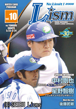 今回の表紙を飾るのは、「おかわり」でおなじみのパワーヒッター中村剛也選手と中継ぎとしてフル回転で活躍している星野智樹投手です。