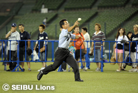 その試合にゲストとしてIWGPチャンピオン真壁刀義選手をはじめとする新日本プロレスのメンバーがライオンズを激励に駆けつけ、始球式やトークショーで最後の大宮開催を盛り上げます。