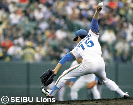 現役通算112勝、日本シリーズでは9試合に先発し、特に82、83、85年には第1戦の先発を務めるなど、90年までの現役生活で輝かしい成績を残しライオンズ創成期を支えた投手の一人です。