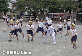 柴田氏は小学生時代からプロ野球時代の体験を通じて、「夢の実現のために、今の瞬間を大切に、好きなことをコツコツと続けましょう。」と語り、また、講演会終了後には校庭へ移動し、各クラスの児童とドッチボールを行いました。