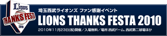来年こそは日本一を奪還し、お互いに心から「THANKS」と言い合えることを信じて「LIONS THANKS FESTA 2010」を開催します。