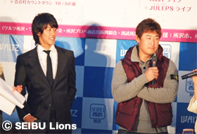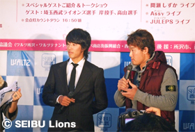 MY PAGE11月27日(土)、所沢駅西口ワルツビル2階ぺデストリアンデッキ特設ステージにて開催された「所沢駅西口イルミライティングファンタジア2010」イルミネーション点灯式に、岸孝之投手、高山久選手が参加いたしました。