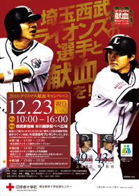 MY PAGE12月23日(祝)に西武新宿線 本川越駅前ぺぺ広場にて行われる「2010クリスマス献血キャンペーン」に、ライオンズから原選手、上本選手が参加いたします。