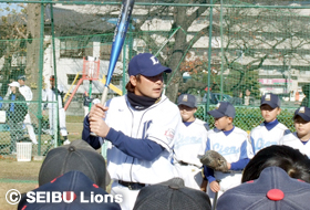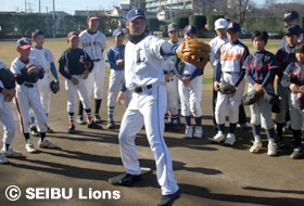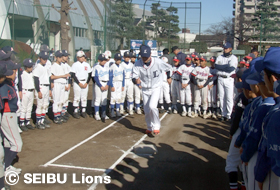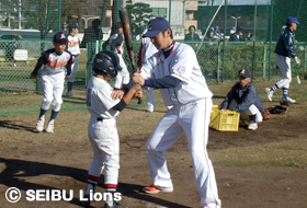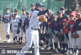 MY PAGE12月4日(土)、入間市運動公園において市内少年野球連盟に在籍する19チーム小学6年生100名を対象に、「埼玉西武ライオンズ野球教室」を開催し、上原厚治郎(球団スタッフ)と吉見太一(球団スタッフ)が講師を務めました。