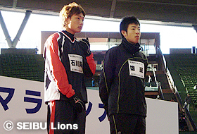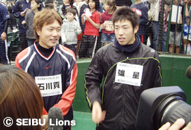 MY PAGE12月5日(日)、第21回所沢シティマラソンが西武ドームをスタート・ゴールの起点に周辺地域を走るコースで行われ、埼玉西武ライオンズでは地域振興活動の一環として、雄星投手と石川貢選手が出場いたしました。