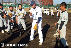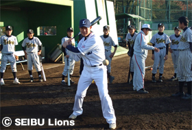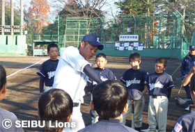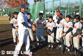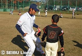「今日は、短い時間でしたがみんなとプレーして楽しかったです。これからも、継続的に一生懸命練習して、埼玉西武ライオンズの選手を目指して頑張ってください。」