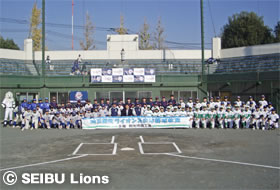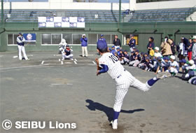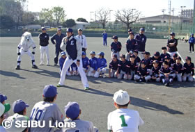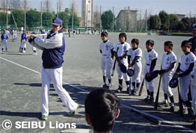 MY PAGE12月11日(土)、和光市運動場において和光市少年野球連盟に所属する7チーム小学5年生から6年生100名を対象に、「埼玉西武ライオンズ野球教室」を開催し、中田祥多選手と梅田尚通選手が講師を務めました。