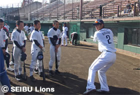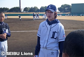 「今日指導したことを継続的に続けて、これからも頑張ってください。この中からライオンズへ入団して、一緒にプレーできることを期待しています。また、野球を続けていく上で"道具を大切にすること"、"ご両親をはじめ周囲の方々へ感謝の気持ちを忘れないこと"を約束してください。」