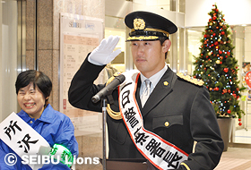 MY PAGE12月15日(水)、所沢駅西口周辺にて「年末年始特別警戒取締り」キャンペーンが実施され、高山久選手が所沢警察一日署長を務めました。
