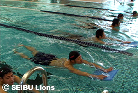 午後からはプールに移動し、大迫トレーニングコーチの指導のもと、リラックスモードで水泳トレーニングが行われ選手たちは終始笑顔!!
