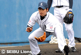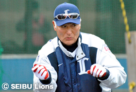 フリーバッティング後には、バントやバスター、ライト方向へのバッティングなど、走者を進塁させる“チームバッティング”の練習が、4年ぶりにライオンズへ帰ってきた土井ヘッドコーチ兼バッティングコーチの指導のもと行われました。