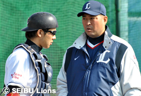 また、バッテリーと内野手で行う投内連係の後には、サインプレーの確認として、バントシフトと牽制の練習を1時間以上かけて実施。若手の大石・菊池両投手が、涌井投手や星野投手のプレーを参考にするシーンも見受けられました。