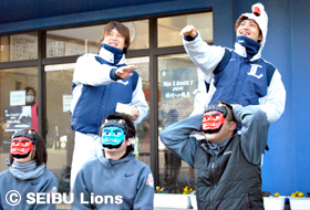 全体練習前には、エース涌井投手とルーキー大石投手がチームを代表して、節分の日恒例の豆まきを楽しそうに笑顔で行いました。