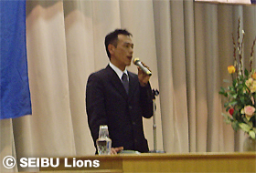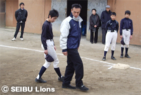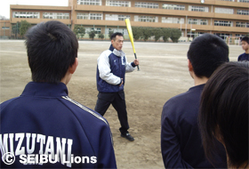 また講演会終了後には校庭に場所を移し、野球部の生徒を対象に、プロ野球経験者ならではの的確な走塁アドバイスとバッティングの基本を丁寧に指導していました。きらきらと輝く生徒たちの目が大変印象的でした。