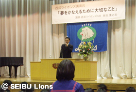 ライオンズでは、埼玉県教育委員会が主催する「夢と豊かな心をはぐくむ講演会事業」と連携し、本活動を実施しております。