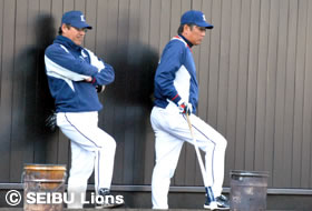 今日の全体練習は第1クール同様、投内連係後にバントシフト・牽制のサインプレーの確認をし、午後から投手はピッチング、野手はバッティング練習を行っています。