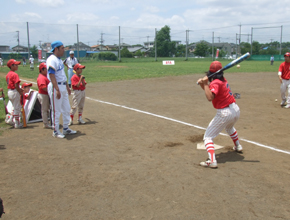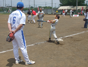 最後に講師と子供たちで真剣勝負が行なわれ、往年のストレートを披露した松沼さんはじめ大塚さん、原井さんも現役時代のシュアなバッティングに見学者からも拍手が沸き起きていました。