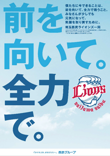 埼玉西武ライオンズでは、この度の東日本大震災に対し、「我々が今できることは何か」を常に考え、行動してきました。そして今回「前を向いて。全力で。」のメッセージを掲げシーズン開幕を迎えようと考えました。