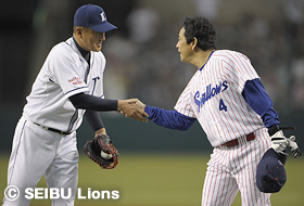 MY PAGE5月28日(土)、29日(日)、31日(火)、6月1日(水)に行われた日本生命セ・パ交流戦の特別企画として、豪華競演の両チームファンには懐かしい歴代OBによるスペシャルトークショーと一打席対決!!