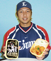 また今年は、オリジナル容器が期間限定でモデルチェンジとなっており、第2弾は、埼玉西武ライオンズ初のオリジナルバッグの特典の他、お弁当箱として再利用しやすいBOXタイプの弁当箱を採用しました。さらに、OWNERS LEAGUEカード(SUPER STARカード)1種・BOXバージョン限定お弁当オリジナルカード3種類の全4種の内、1種類が入っています。