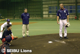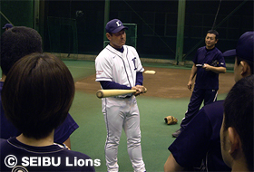日頃より野球指導に携わっている指導者ならびに今後指導を志す対象者へ、福島孝二(ファームディレクター)校長をはじめ、埼玉西武ライオンズ二軍スタッフによるコーチング指導を行いました。