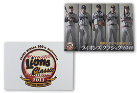 栗山選手、中島選手、片岡選手、涌井投手、中村選手の5選手でデザインされたフォトとライオンズ・クラシック 2011ロゴを2枚1セットにしたフォトセット(非売品)です。