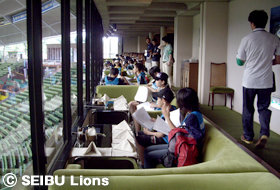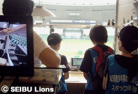ライオンズでも対象となった中学生の皆さんの夢の実現に一歩近づくために、プロ野球1試合を開催するにあたり、たくさんの職種および係員が運営に携わっている西武ドーム内の様々な職場を見学し、質疑応答を交えながら進めていきました。