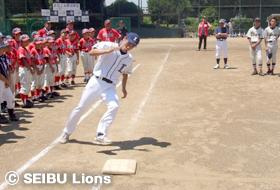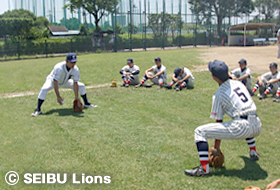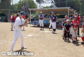 MY PAGE7月16日(土)、加須市豊野台公園野球場において大利根町少年野球チームに在籍する3チームならびに大利根中学校野球部80名の児童生徒を対象に、「埼玉西武ライオンズ野球教室」が開催され、ライオンズOBの安藤信二氏、柴田博之氏が講師を務めました。