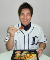 牧田投手の好物「オムライス」と「生姜焼き」をセットにした「オムライス&豚の生姜焼き」のWご飯や、ジューシーな鶏肉を使用した鶏肉の照焼き、地元静岡の名産で牧田投手の体作りに欠かせないカルシウムが豊富な魚を使用した、「いわし団子の野菜あんかけ」、「しらす入りかき揚げ」など牧田投手も納得のお弁当を期間限定で販売します。