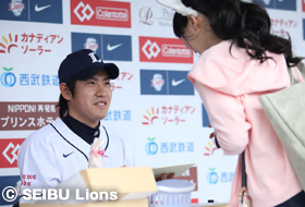 | 				 試合日  | 							 対戦相手  | 							 練習見学会 50組 100名  | 							 選手サイン会 30名  | 							 					グループ 30組 120名  | 							 親子応援隊 50組 100名  | 							 バットボーイ 2名  | 							 ふれあい野球教室 300名  | 		|
