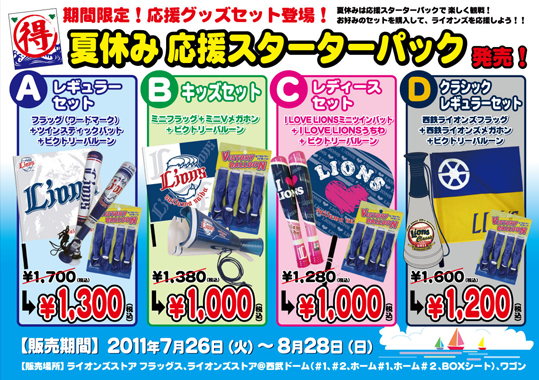 | 販売場所 | ライオンズストア フラッグス、ライオンズストア@西武ドーム(#1、#2、ホーム#1、ホーム#2、BOXシート)、ワゴン |