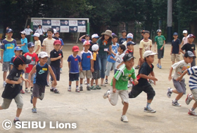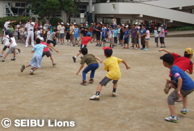 埼玉西武ライオンズでは、スポーツ分野で協力し、大井氏・柴田氏の指導のもと、ランニング・キャッチボール・ティーバッティング体験を通して、野球プレーの要素である、“投げる・捕る・打つ・走る”ことの楽しさや面白さを伝えました。