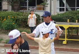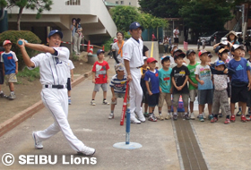 MY PAGE8月2日(火)さいたま市立高砂小学校において、野球競技経験の初級児童小学1~6年生94名を対象に「青少年夢の配達便事業」キッズベースボールが開催され、ライオンズOBの大井久士氏と柴田博之氏が講師を務めました。