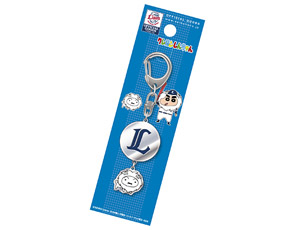 ライオンズのイニシャルマークにしんちゃんの愛犬シロのチャームが付いたとってもかわいいキーホルダー。