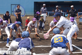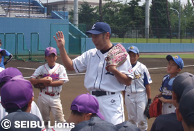 MY PAGE8月14日(日)、昭島市民球場において市内小学生60名の児童を対象に、「埼玉西武ライオンズ野球教室」が開催され、ライオンズOBの大塚光二氏が講師を務めました。