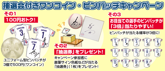 ぜひこの機会に、「抽選会付きワンコイン・ピンバッチキャンペーン」に参加して、大人気のユニフォーム型ピンバッチをお得にGETしよう!