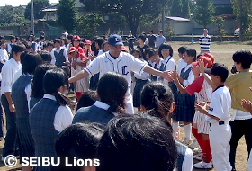 また、講演会終了後には校庭に場所を移し、野球部生徒と女子ソフトボール部と交流し、野球の基本プレーの要素でありますキャッチボールを中心に重要性と練習方法を丁寧に指導いたしました。