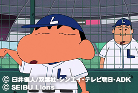「クレヨンしんちゃん」の主人公・野原しんのすけ君がライオンズの地元埼玉、カスカベ在住というつながりから、今年7月30日(土)のオリックス戦で野原しんのすけ君が「ライオンズ一日応援団長」に就任し、始球式で登板したほか、ライオンズとのコラボグッズやコラボ弁当を発売しましたが、こうした縁から今回、クレヨンしんちゃんのアニメーションに中村選手が出演することとなりました。先日、都内某スタジオにてアフレコの収録が行われました。