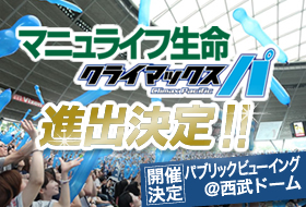 2011マニュライフ生命 クライマックス・パ ファーストステージは10月29日(土)より札幌ドームで開催されますが、開催期間中は西武ドームにて完全ライオンズ贔屓のパブリックビューイングを実施し、ライオンズ戦士たちの戦いの模様を完全生中継します。